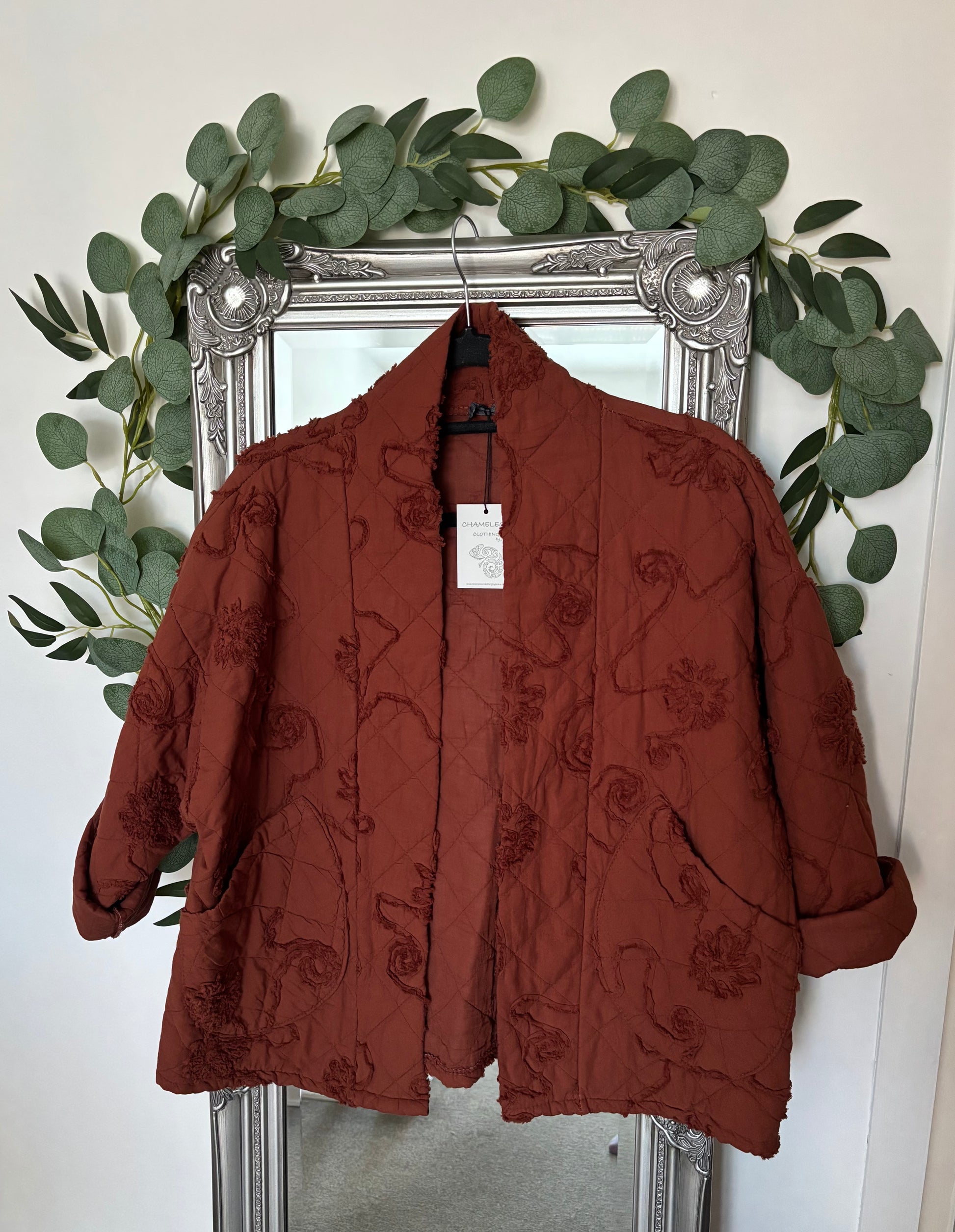 Stunning edge to edge quilted jacket in a beautiful plain, embossed fabric with front pockets.