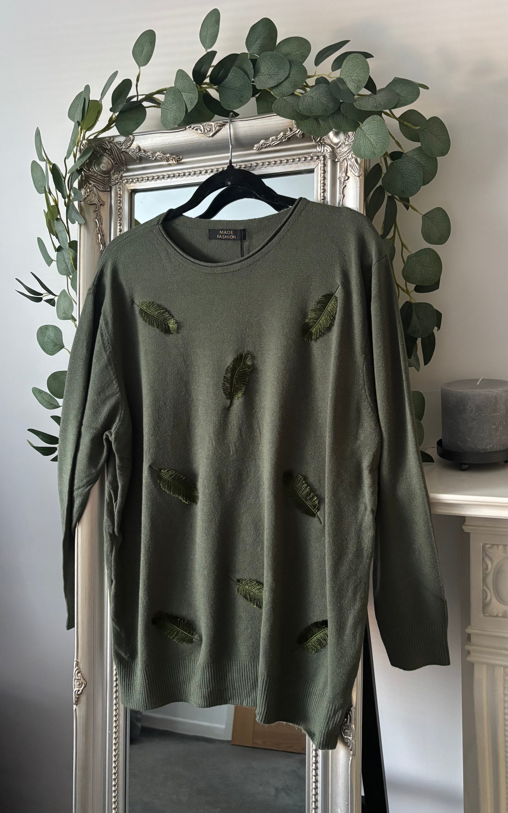 Super soft jumper with stunning feather detailing to the front.